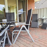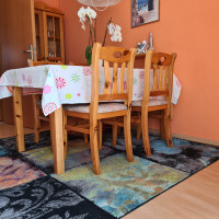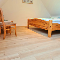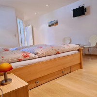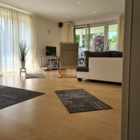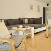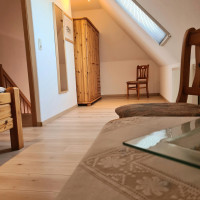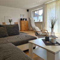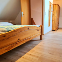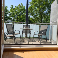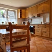 Unsere 70 qm große Ferienwohnung liegt im ersten Obergeschoss unseres Einfamilienhauses und bietet Ihnen einen nach Süden gelegenen möbilierten Balkon.